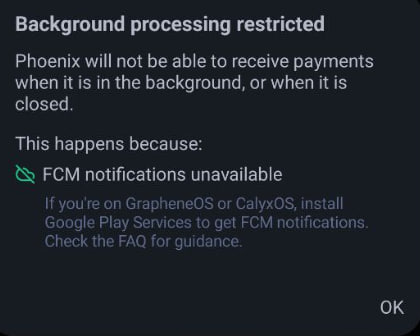 Playing with these static payment codes is fun but be aware that if you are using Phoenix on Android WITHOUT Google Play Services, the FCM notifications are not available.