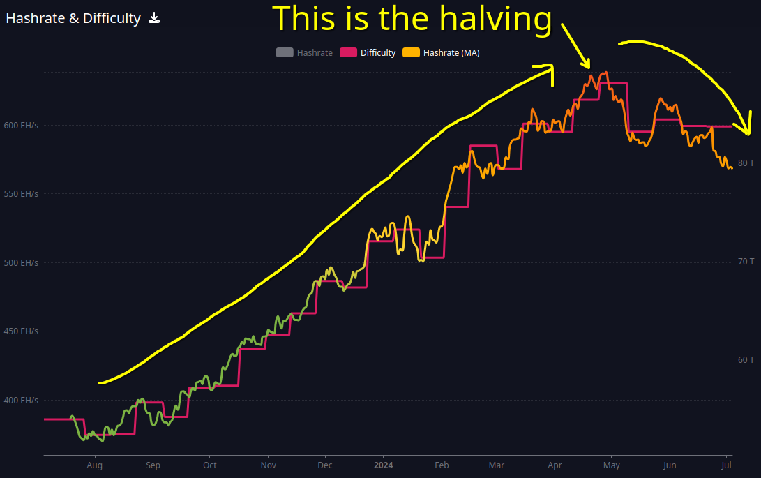 So. We are in phase one of the after-halving. The hashrate has gone down. This was the logical outcome.