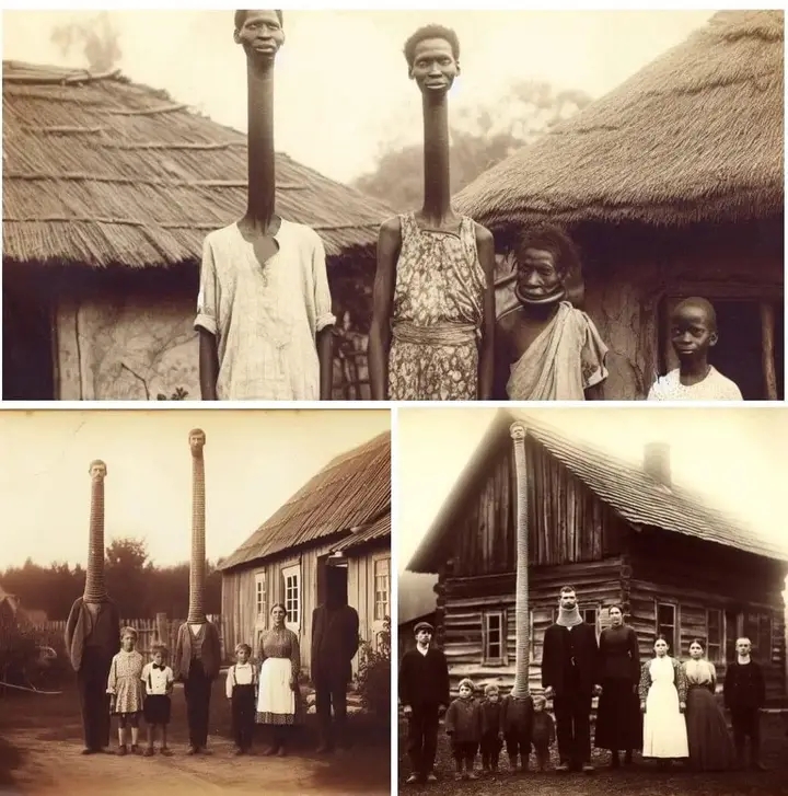 Historical leaked footage back in 1860 for the completion of longest neck family caught back then.