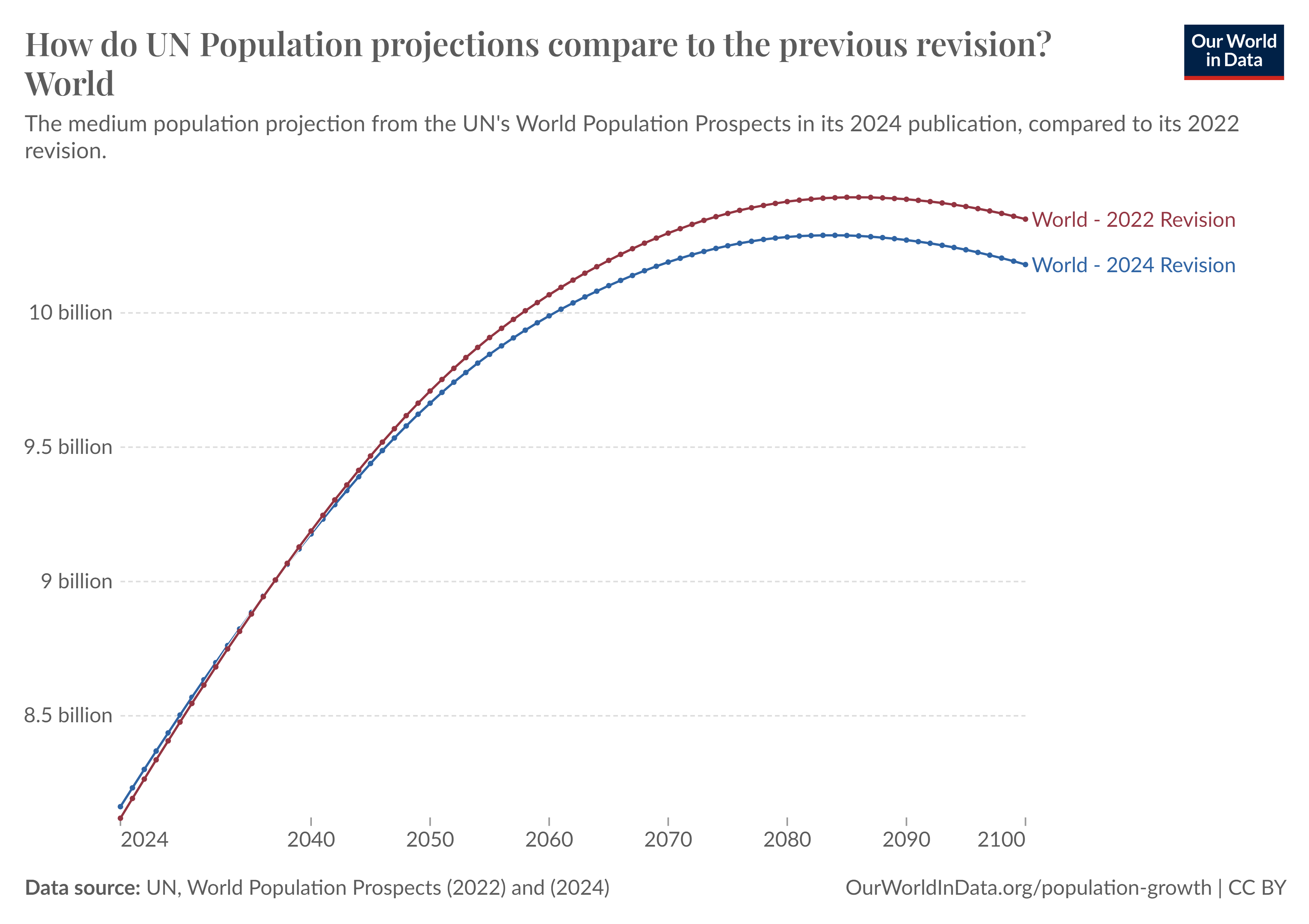 In this article, we wanted to provide key insights from this latest wave of data.The world population is projected to peak slightly earlier than in previous projectionsThe world population is projected to peak slightly earlier than in previous projections