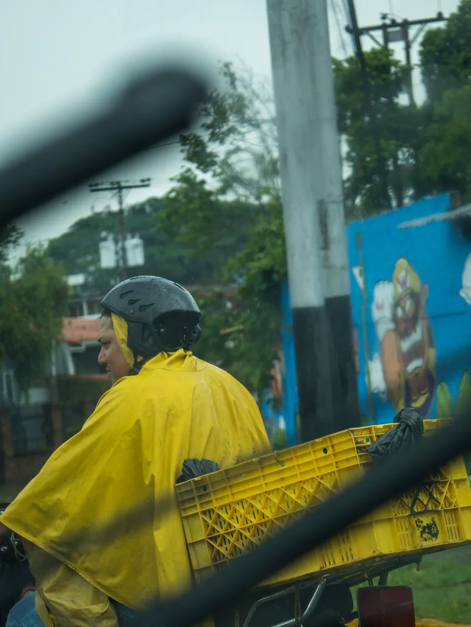 Motorcyclist with "rain protection" caught my attention with the colors in this photo: