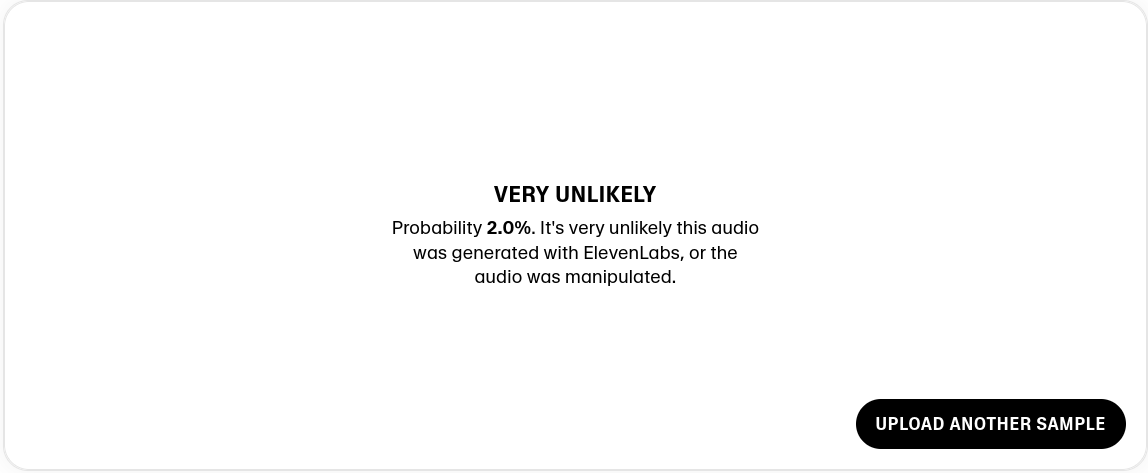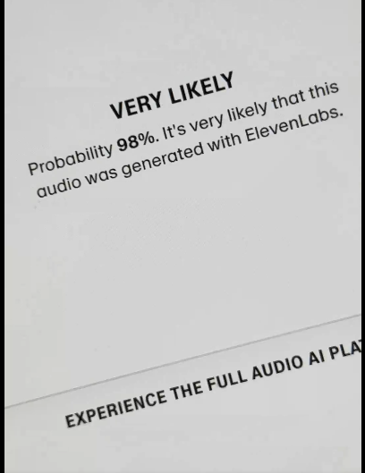 ElevenLabs is a "AI voice cloning" tech and they have a feature where you can upload samples and it returns the likelihood that the sample was generated with its tech.