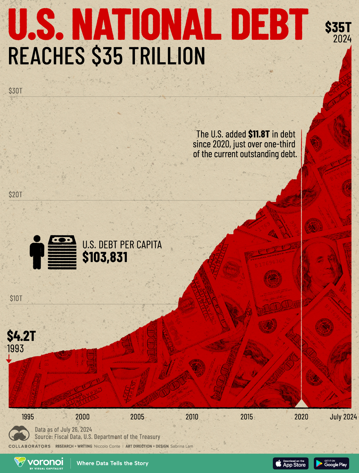 This graphic shows the ballooning U.S. national debt, based on figures from the U.S. Department of the Treasury’s Fiscal Data website.A New Milestone is ReachedA New Milestone is Reached