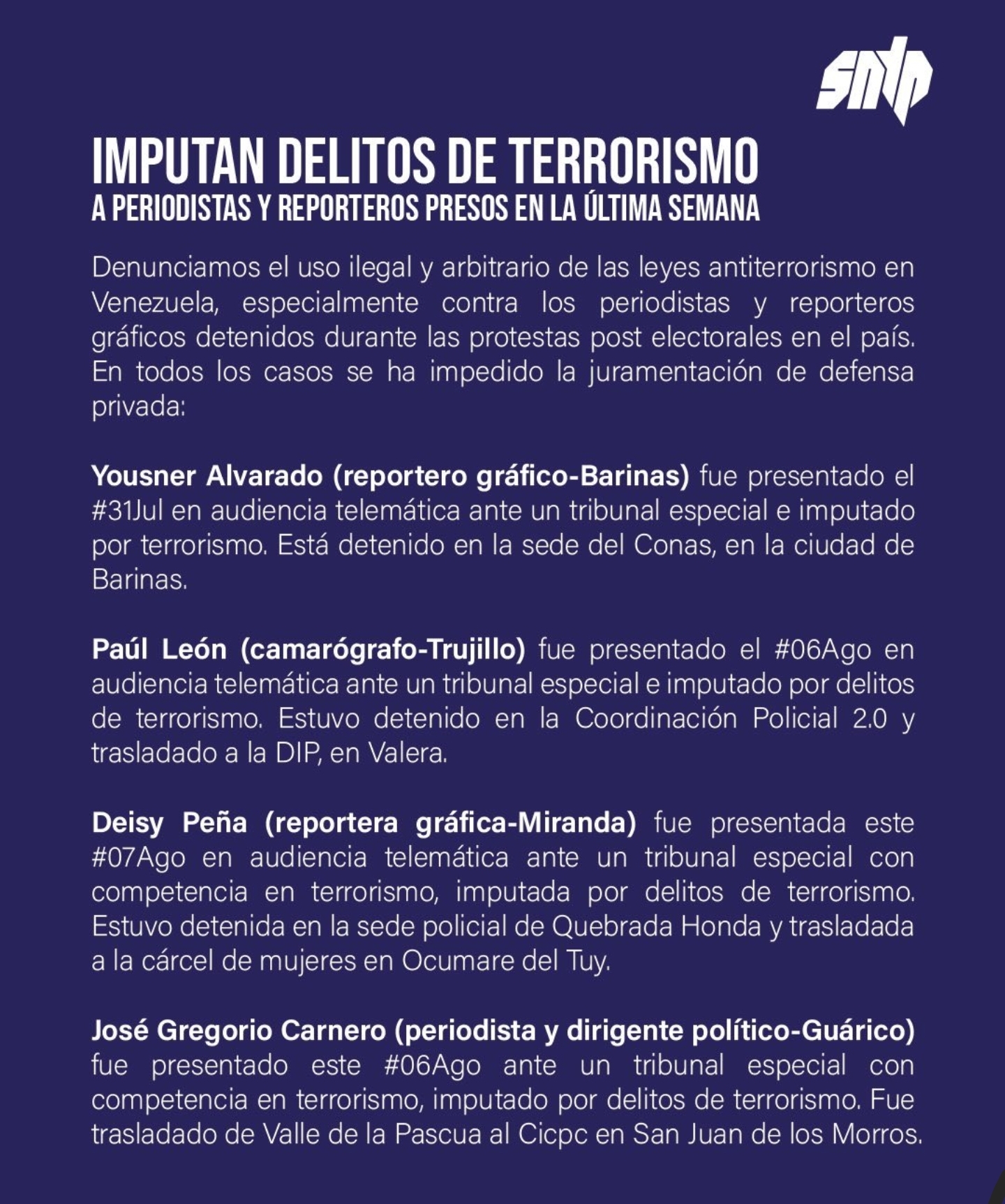 The Venezuelan dictatorship has just charged four independent journalists with TERRORISTS.