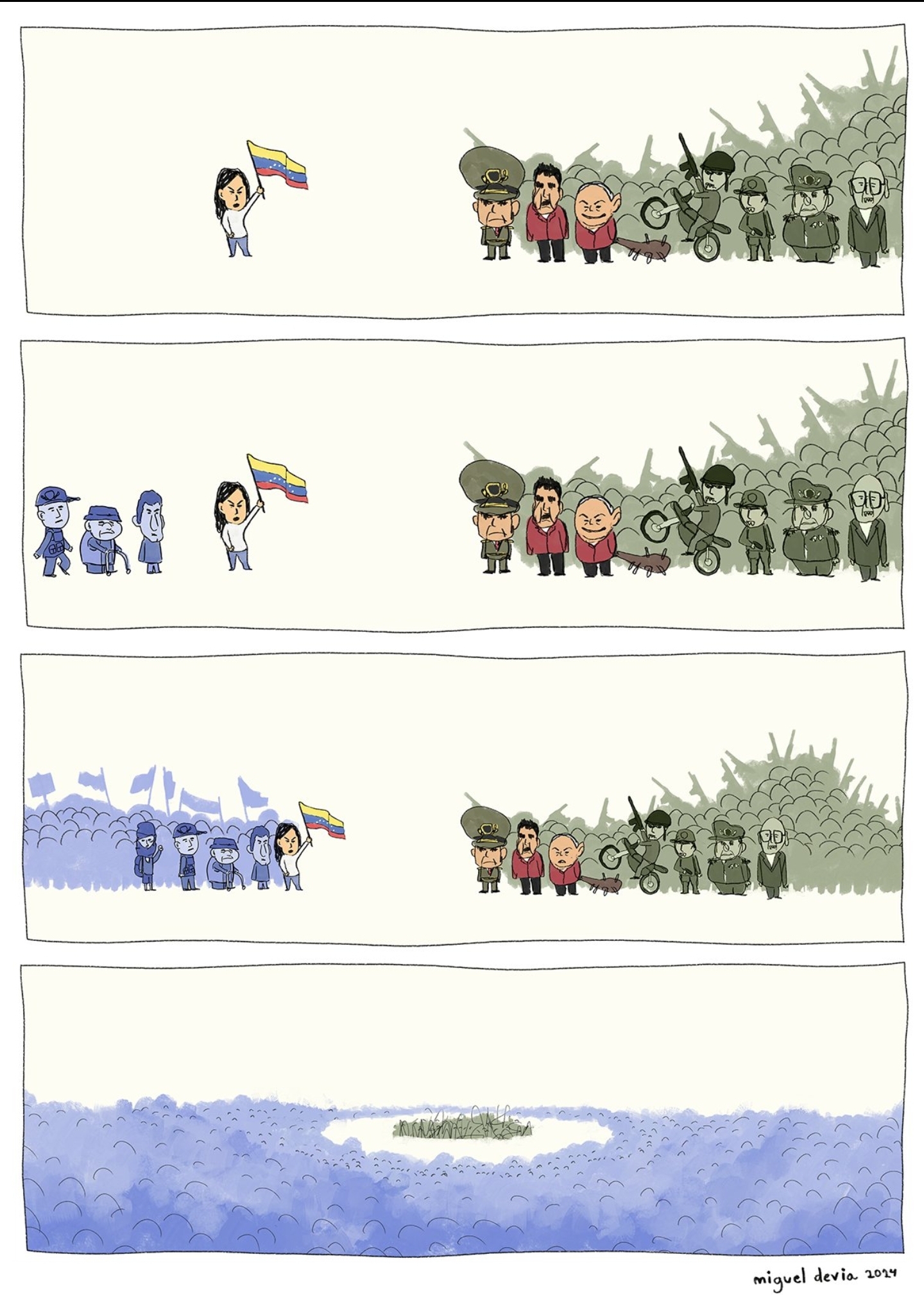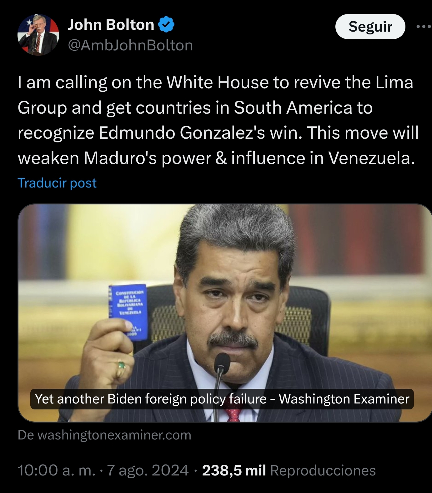 Yes, saying it that way seems like a good argument, but unlike Venezuela, the United States has freedom of expression, they don't block social networks and chat channels, they haven't censored TV shows, they haven't closed TV channels, they haven't expropriated newspapers, the country hasn't lost 20% of the population to mass emigration, on the contrary, it is the immigrants who continue wanting to invade the United States for the thousand opportunities and benefits it offers. The United States is not at its best like a few decades ago, but it is never and never at the same level as Venezuela, so in that sense Maduro's criteria is nullified. In addition to the fact that Maduro's fraud is too obvious, the results are on the web in a PUBLIC manner, so that anyone from any country can see them, but the only one who denies the legitimate result is him and his regime, not to mention the oppression and kidnapping of citizens. In the United States, you can stand in the middle of any street with a sign saying that you are against Biden and no police or national guard will come to take your life. Maduro does not know where to seek shelter and can no longer find arguments that could be valid. I really liked that you showed me that article, I had not seen it, if you find others do not hesitate to comment. Thanks