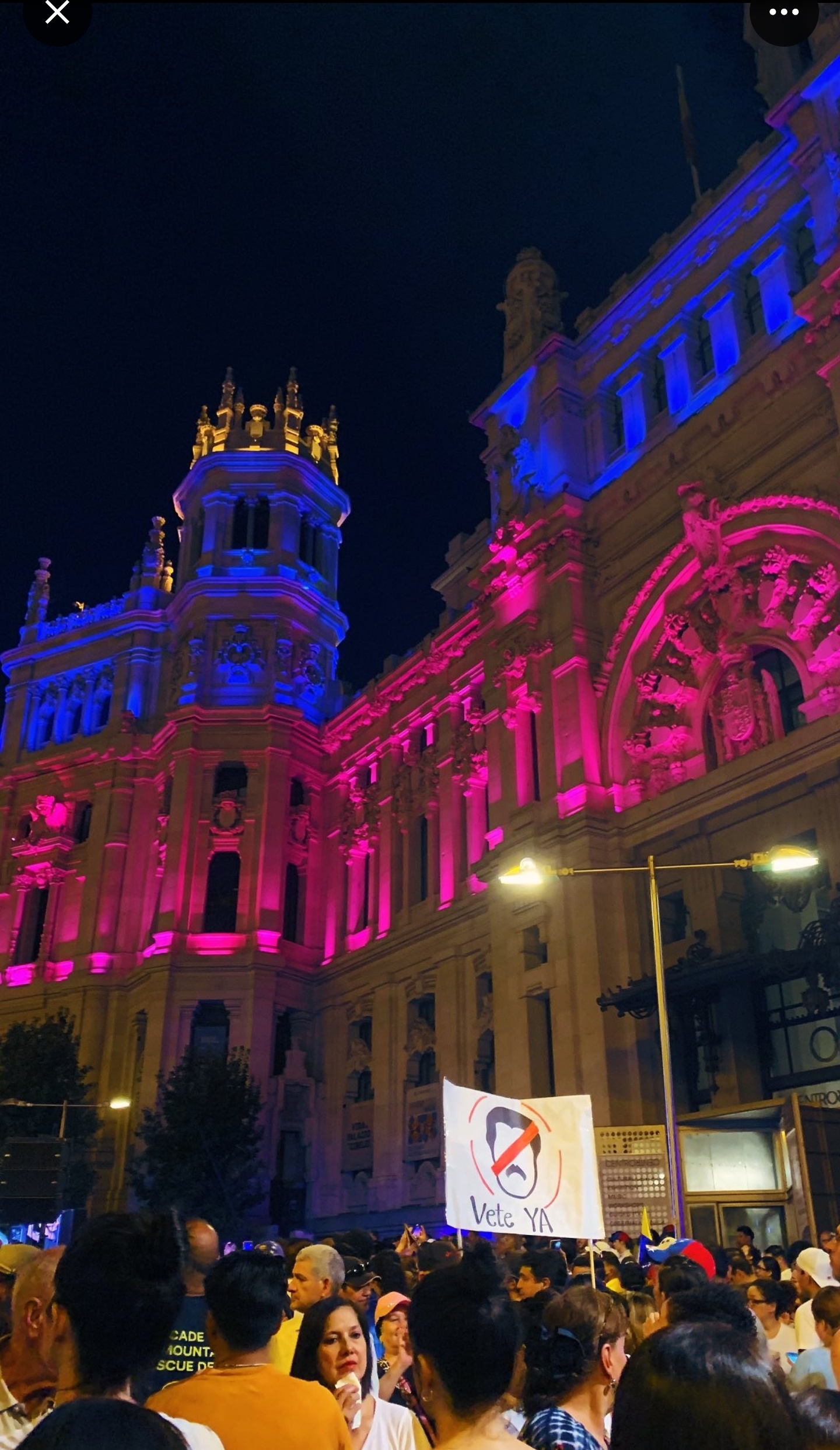 The Cibeles Palace in Madrid, Spain, is decorated with the Venezuelan tricolor to recognize the struggle of Venezuelans for democracy, freedom and human rights.