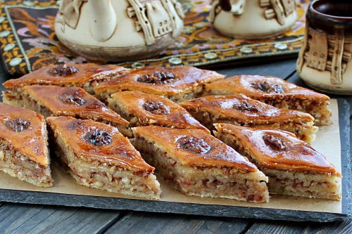 I'm fan of walnuts and my favorite dessert is "Пахлава медовая" (as my mother tongue says), you can find it behind Baklava name