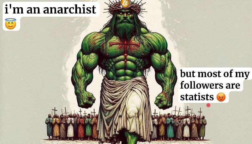 I have taken the same stance as I've come to know god for myself, separate from religion. Jesus definitely appears to be the only prominent religious story that promotes anarchy — the caveat of course being that anarchy only actually works if we have faith, love, and trust for our fellow people unconditionally.