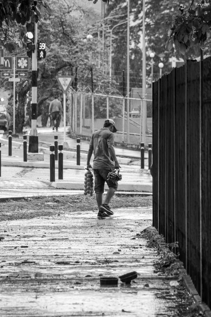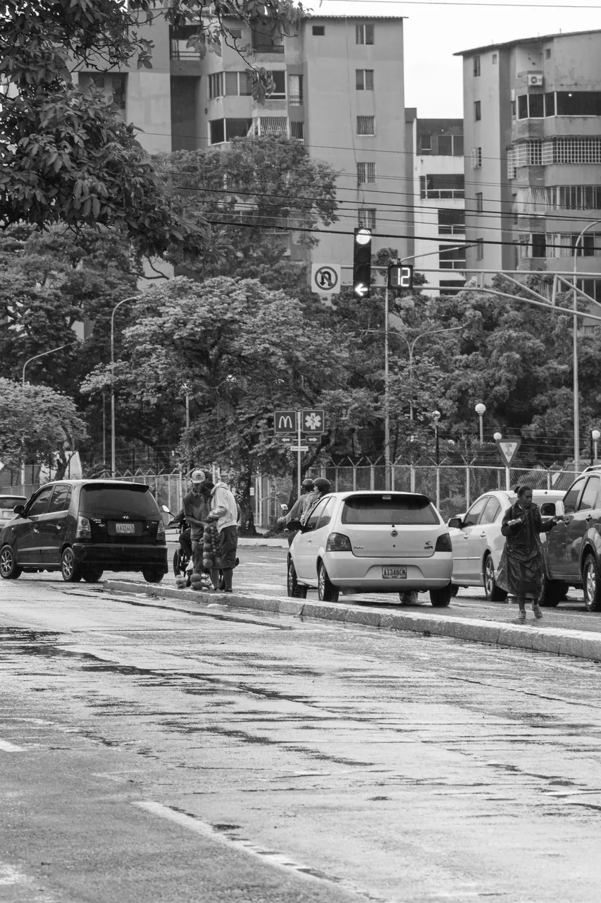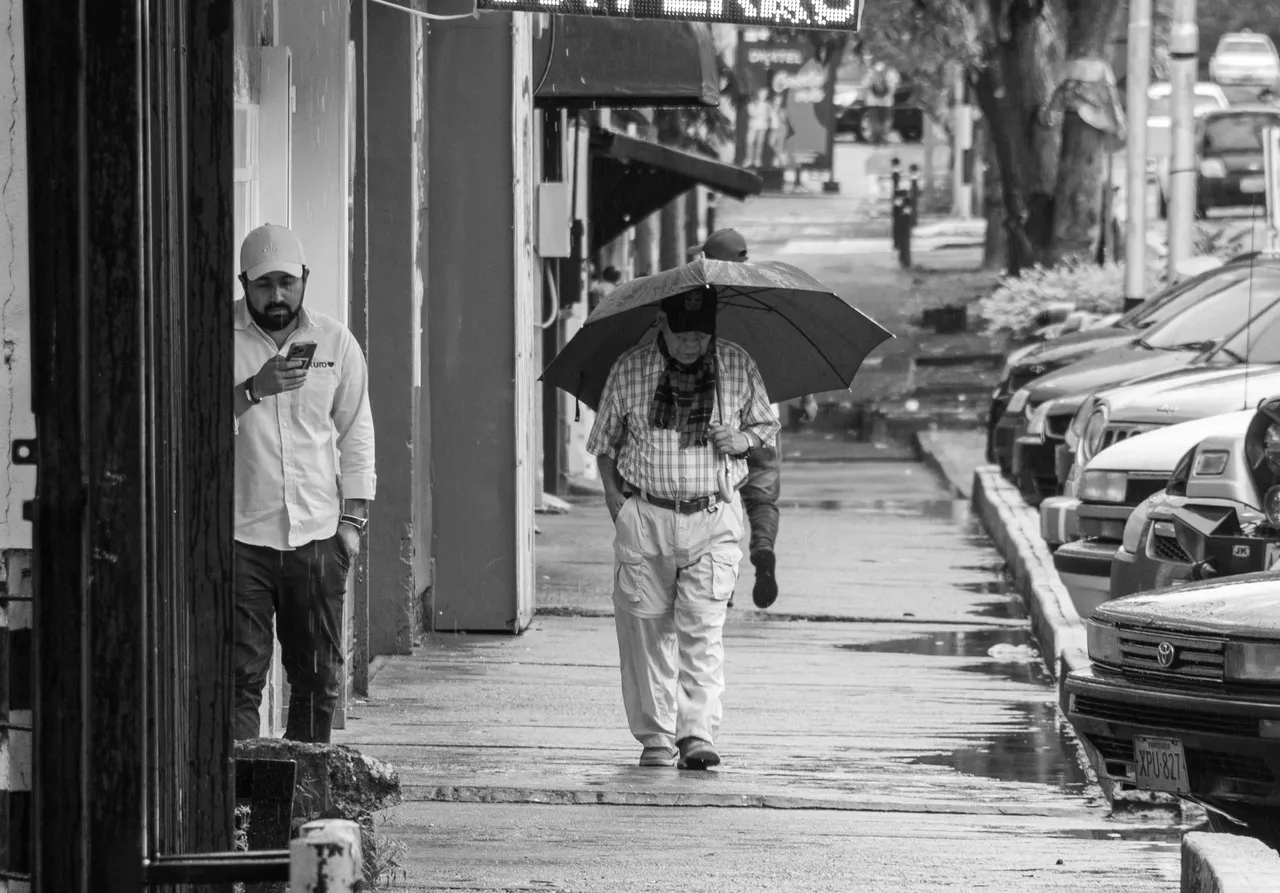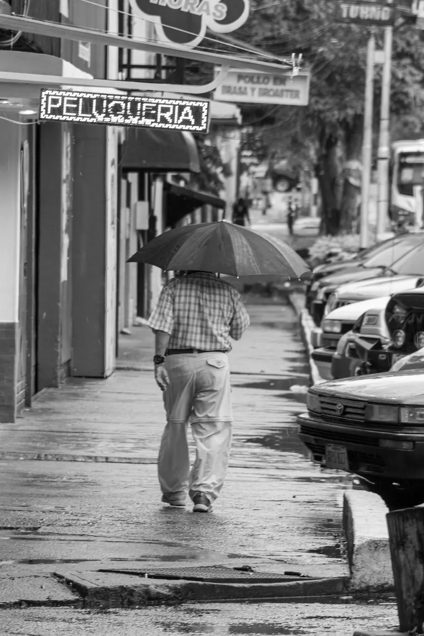 These photos are so beautiful, they made me feel comfort and nostalgia at the same time. I miss Venezuela and its rain, I live in a city where it doesn't rain, I haven't heard a lightning bolt for 7 years, my daughter doesn't know its sound. Going back to the photos, I like that grayscale and the angles in which you take the photos, I'm not an expert in photography but I really appreciate that work, it's an activity that I like. I can't decide on a favorite, but without a doubt one of them is number 5, the man walking backwards with his umbrella.