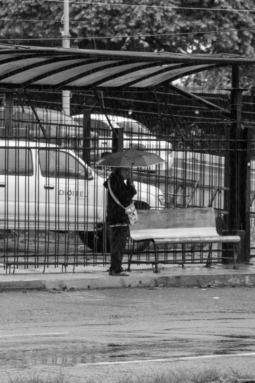 Among them, a lady who was waiting patiently at the bus stop caught my attention. Her calm and serene face conveyed a feeling of peace and acceptance in the face of the rain, as if it were a natural part of everyday life.