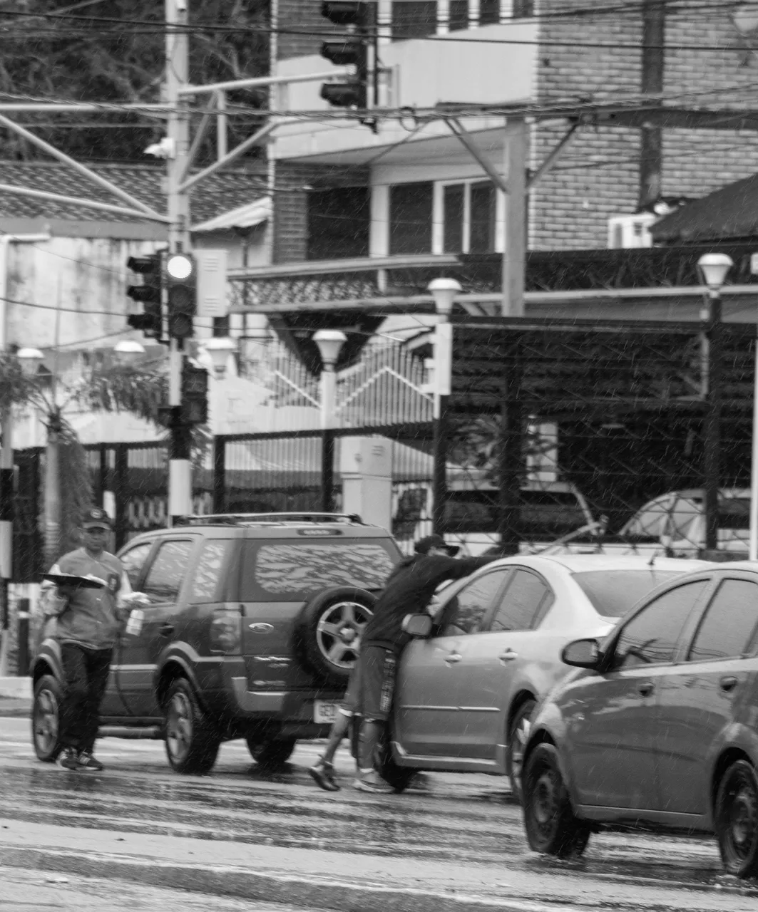 The people who earn their living "working" at the traffic lights were still there, tireless and immovable in the face of any type of weather.