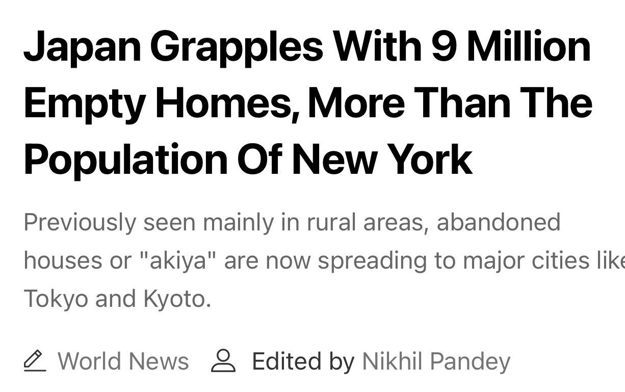 9 million empty homes. No wonder housing is affordable in Japan
