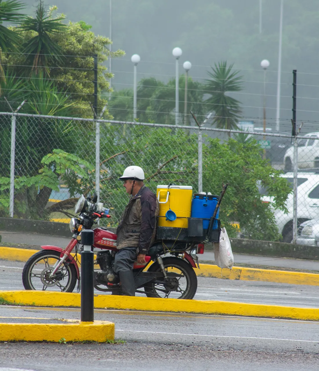 In the next picture I was struck by how the man was carrying a lot of things on his motorcycle, he adapted it to be able to work with it, I think he was selling natural milk.
