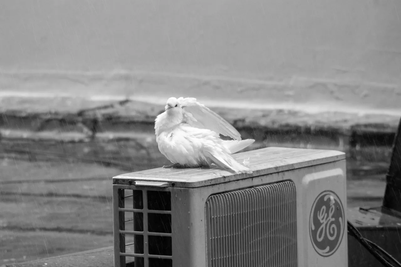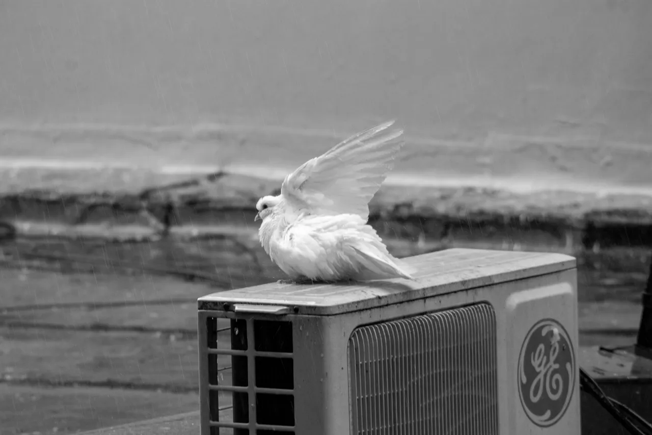 When I got home, I looked out the window and saw a very curious scene. There was a pigeon literally taking a shower. I watched as it raised its wings to let the water fall and it was cleaning itself, hahaha!