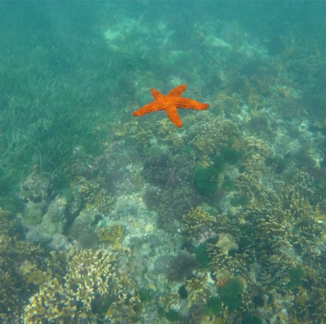 It's very beautiful in the sea, it's very nice to be able to swim in the sea, there are many types of fish that can be seen, and there are lots of coral rocks that I saw in the photos.