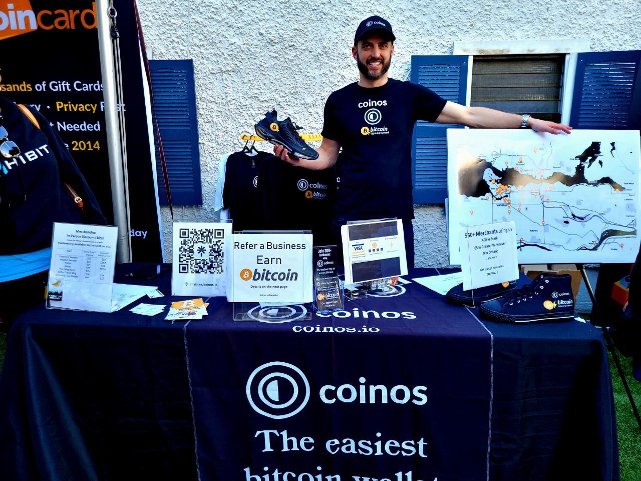 Doing lightning demos and selling Bitcoin clothing & shoes.