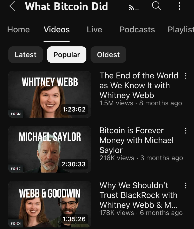 I guess the Bitcoin podcast space can only pull in so many eye balls and its a small market share with some competition for those views, if say Saylor goes on one pod to talk about something people are less likley to listen to the same topic on another show