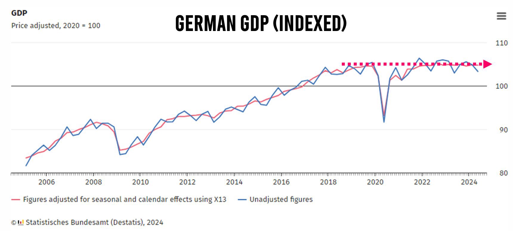 The consequences can be seen in the gross domestic product, which has officially been stagnating for seven years and is now falling slightly, but is only being kept afloat by massive government spending programs, which we all know generate nothing but ultimately destroy productivity. Germany has fallen into an economic and social downward spiral that it could only overcome through a radical policy change and a return to a free market economy. For ideological and intellectual reasons, there is absolutely no willingness to do so among the political caste.