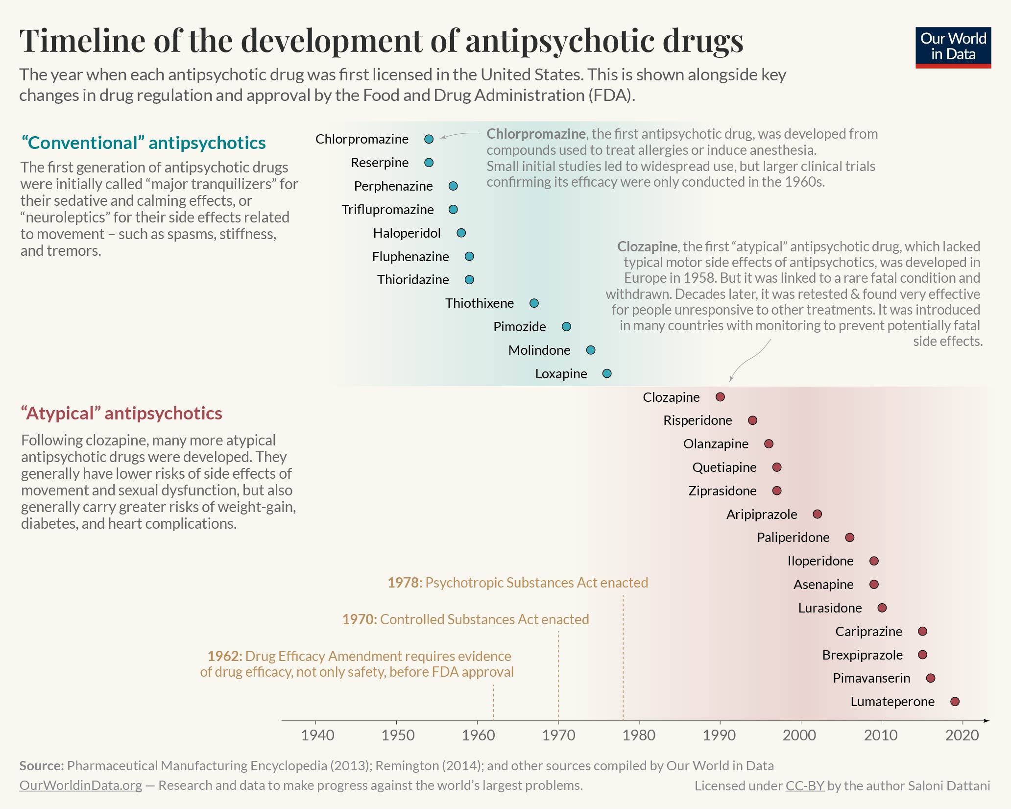 But there’s still a long way to go, and the story of psychosis treatment is incomplete. By understanding its history, we’ll see how much progress has been made and how much potential remains.The development of antipsychotic medicationsThe development of antipsychotic medications