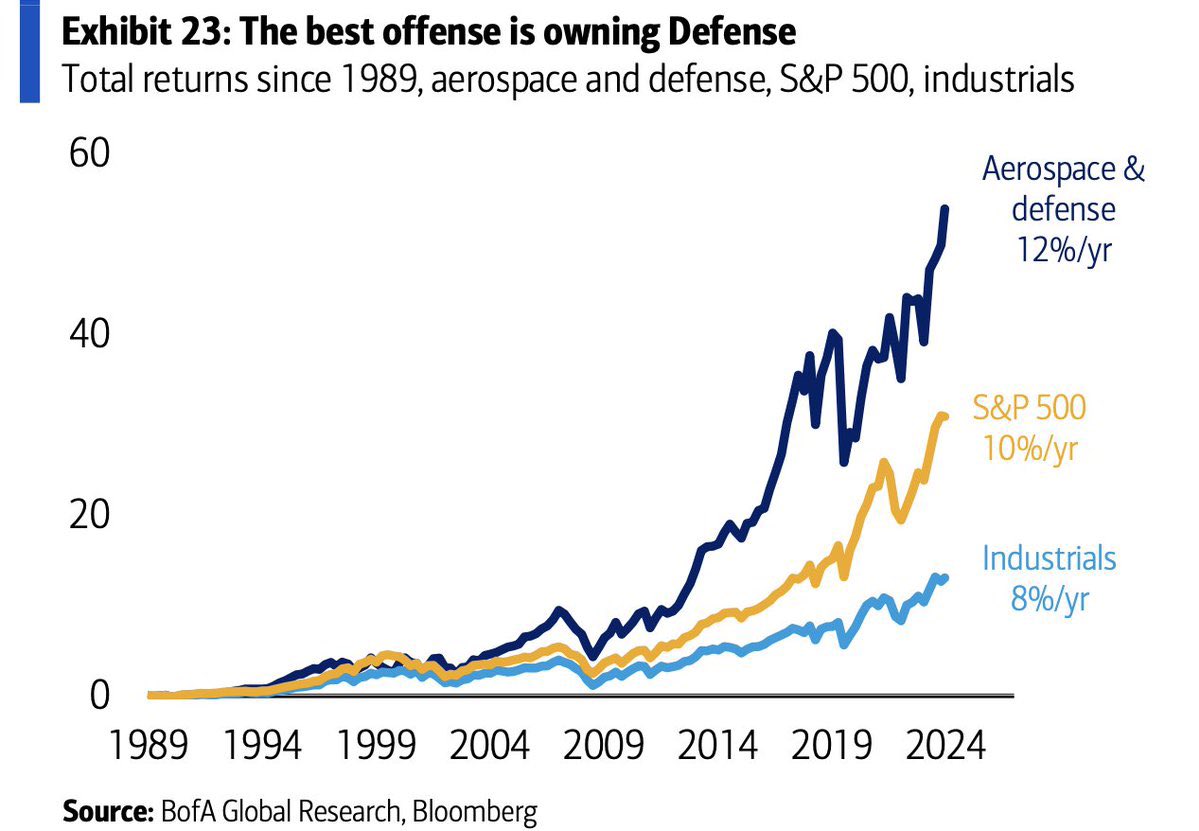 With 9/11 we have entered a kind of 4th turning, a period of high social and economic volatility, which now seems to be entering its final phase, at the end of which economic crises are usually followed by currency collapses, cultural crises and massive reform movements if not revolutions. If we look at the crises of this world, we can probably say without taking any great risks that the military sector remains an outperformer!
