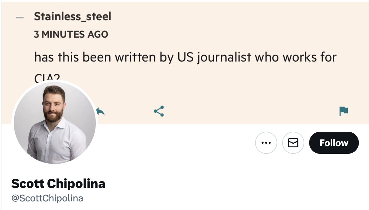 To be clear, I was asking about the person that sent you the article, not the journalist. Sorry for the confusion.